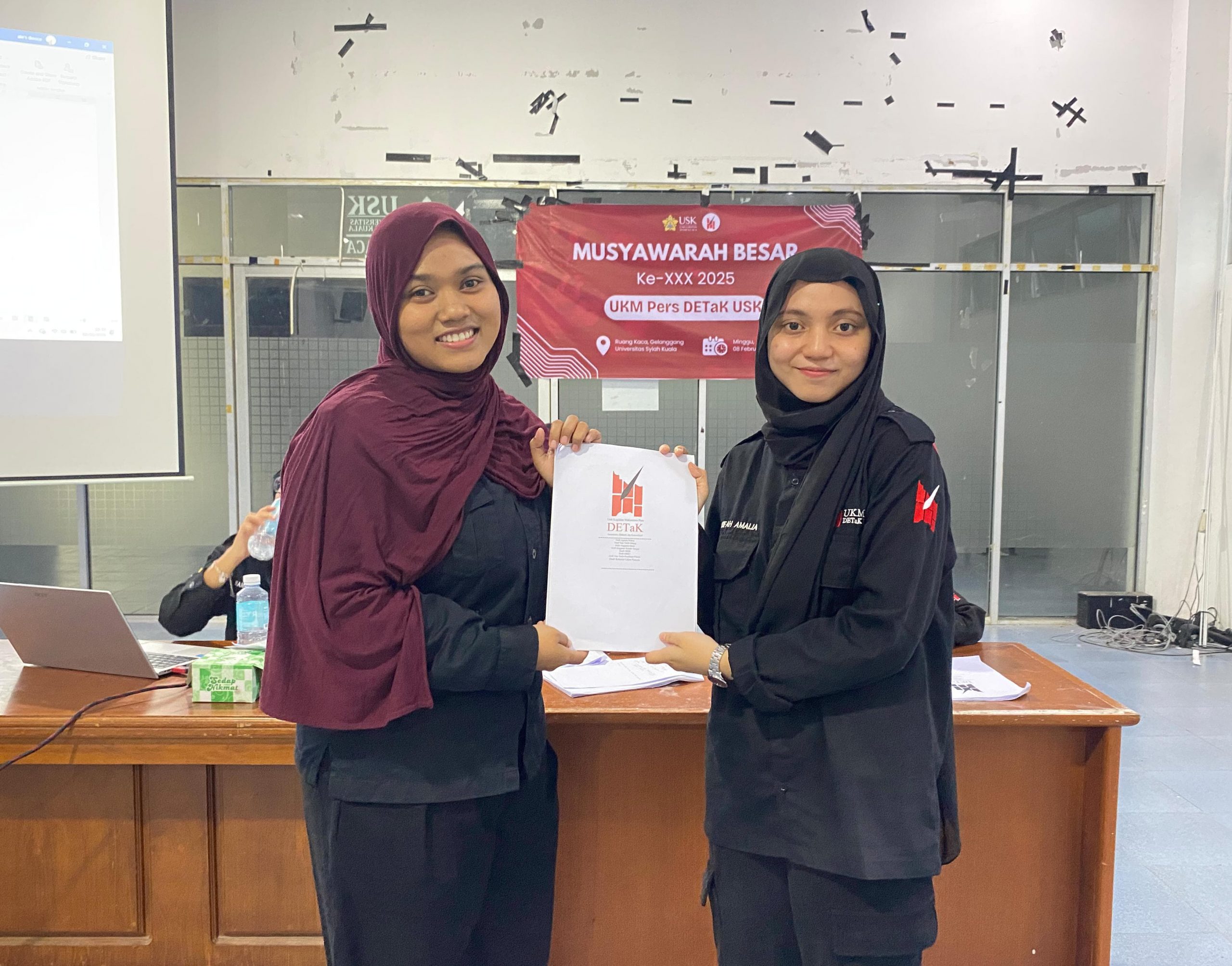 Darussalam – Zarifah Amalia resmi terpilih untuk menggantikan Aisya Syahira sebagai Pemimpin Umum (Pimum) Unit Kegiatan Mahasiswa (UKM) Pers DETaK Universitas Syiah Kuala (USK) periode 2026. Hal ini ditetapkan pada Musyawarah Besar (Mubes) ke-30 yang diselenggarakan di Ruang Kaca Gelanggang USK pada Minggu, 8 Februari 2026.