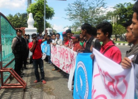 Banda Aceh – Puluhan mahasiswa dan pemuda yang tergabung Forum Paguyuban Mahasiswa dan Pemuda Aceh (FPMPA) melakukan aksi di depan gedung DPR Aceh, Rabu, 29 Oktober 2014.