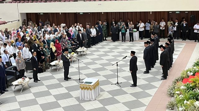 Pelantikan Rektor Universitas Syiah Kuala periode 2026–2031, di Gedung AAC Prof. Dr. Dayan Dawood, Senin 9/3/2026. (Sara Salsabila/DETaK)
