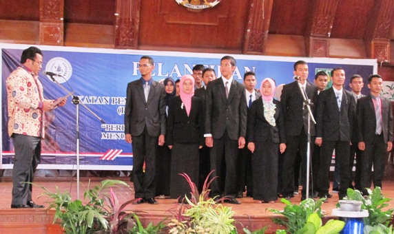 Walikota Sabang, Zulkifli H. Adam sedang melantik pengurus IPPEMAS yang baru. (Putri Nurul Ulfa/DETaK)
