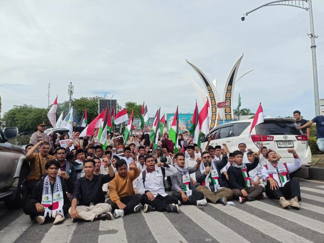 Darussalam-Kesatuan Aksi Mahasiswa Muslim Indonesia (KAMMI) Aceh dan Forum Silaturahmi Lembaga Dakwah Kampus (FSLDK) Aceh menggelar aksi “Gerakan Aceh Peduli Palestina” di kawasan Car Free Day dan Tugu Simpang Lima, Banda Aceh, Minggu (12/10/2025). Kegiatan tersebut diikuti oleh 150 peserta dari sejumlah organisasi dan lembaga keislaman di Aceh.