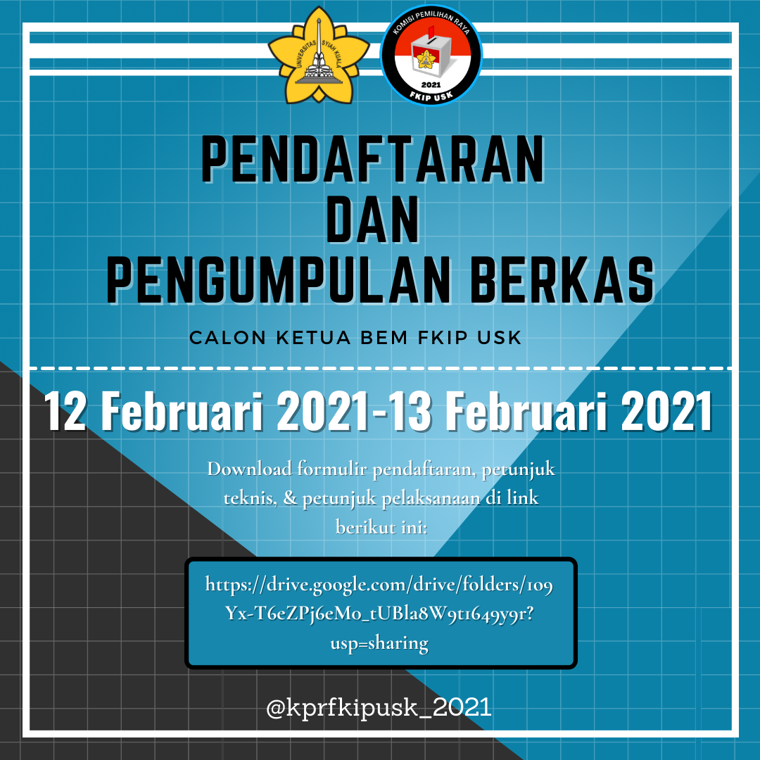 Komisi Pemilihan Raya (KPR) Fakultas Keguruan dan Ilmu Pendidikan (FKIP) Universitas Syiah Kuala (USK) membuka pendaftaran calon ketua umum Badan Eksekutif Mahasiswa (BEM) FKIP tahun 2021, yang dimulai pada tanggal 12 Februari 2021 sampai dengan 13 Februari 2021. Hal ini dikonfirmasi sendiri oleh ketua KPR FKIP USK, Khairun Nisa, melalui wawancara via WhatsApp.