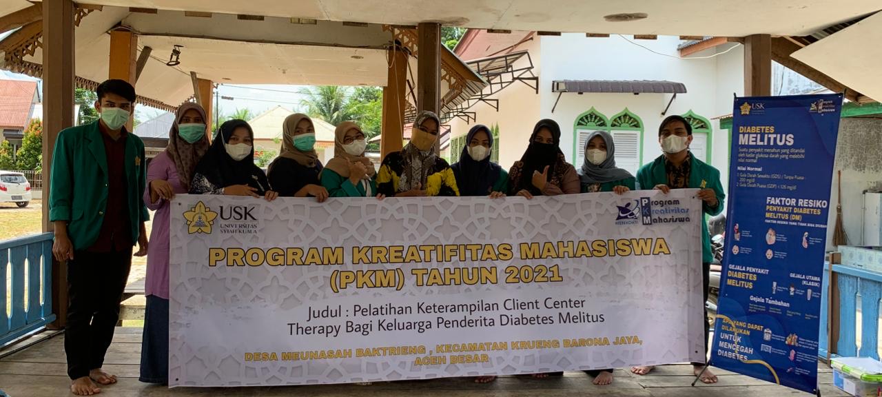 Mahasiswa Universitas Syiah Kuala (USK) yang lulus pendanaan PKM-PM telah melaksanakan kegiatan pelatihan keterampilan Client Center Therapy bagi keluarga penderita diabetes melitus di Desa Meunasah Papeun, Desa Meunasah Lueng ie dan Desa Meunasah Baktrieng yang diketuai oleh Zaratul Maqfirah dan keempat anggota timnya, yaitu Nanda Layya, Muhammad Zidane, Sita Oktavia, yang berasal dari Jurusan Bimbingan dan Konseling FKIP serta Muhammad Ghifari Karsa yang berasal dari Fakultas Kedokteran. Tim ini dibimbing oleh Zahra Nelissa.