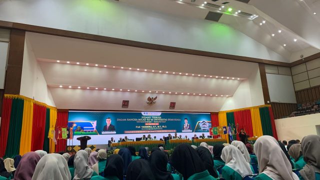 Darussalam–Menteri Ketenagakerjaan Republik Indonesia (RI), Prof. Yassierli, menyampaikan orasi ilmiah berjudul Future Proof Mindset dalam Sidang Terbuka Senat Akademik Milad Universitas Syiah Kuala (USK) ke-64 di Gedung AAC Dayan Dawood pada Jumat, 26 September 2025.