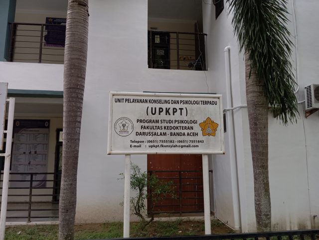 Darussalam-Program studi Psikologi Fakultas Kedokteran (FK) Universitas Syiah Kuala (USK) menyediakan Unit Pelayanan Konseling dan Psikologi Terpadu (UPKPT) yang berlokasi di lantai dua gedung program studi psikologi.
