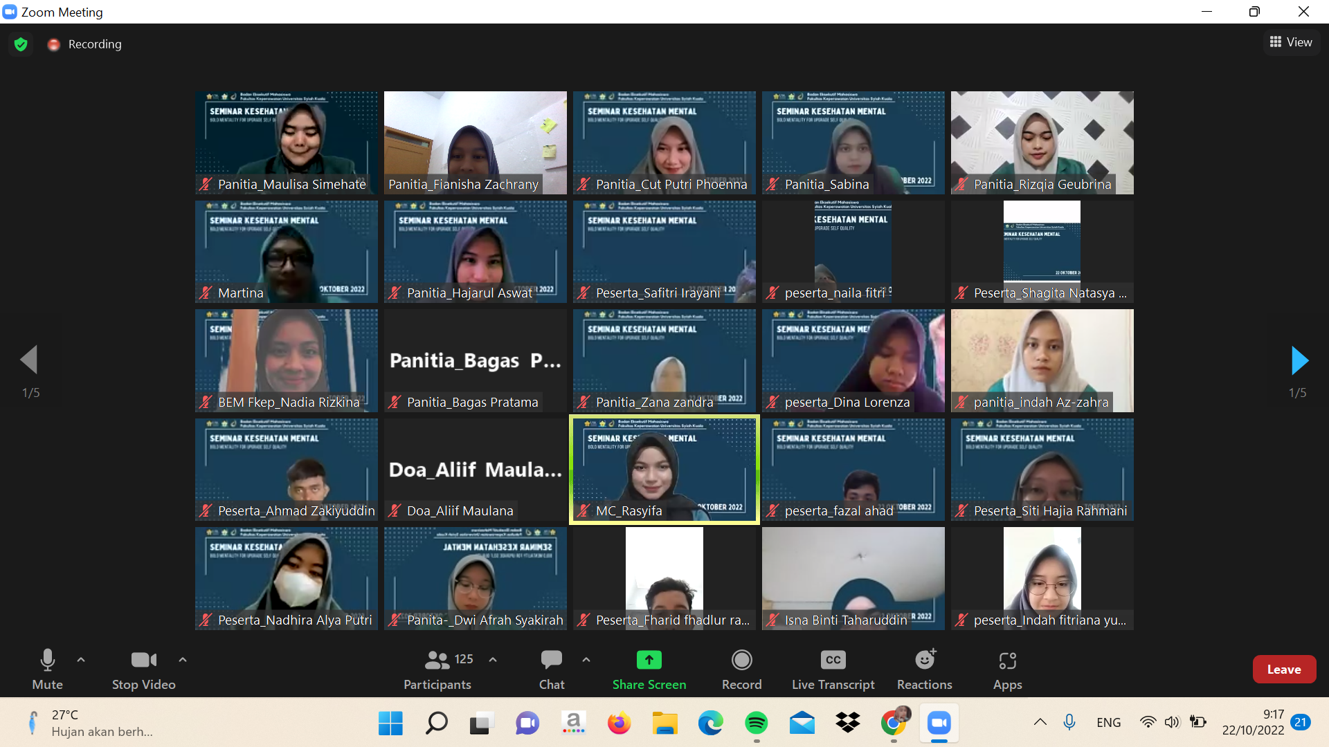 Darussalam – Badan Esekutif Mahasiswa (BEM) Fakultas Keperawatan (FKep) Universitas Syiah Kuala (USK) mengadakan Seminar Kesehatan Mental dengan tema “Bold Mentality for Upgrade Self Quality ” pada Sabtu, 22 Oktober 2022 melalui aplikasi Zoom Meeting.