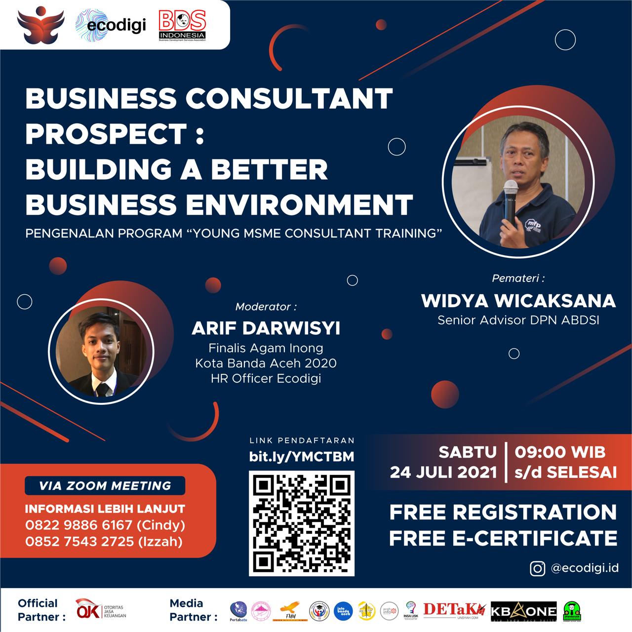 Banda Aceh- Komunitas Economy Digital (Ecodigi) mengadakan webinar secara virtual pada Sabtu, 24 Juli 2021. Adapun tema yang diusung dalam webinar ini adalah “Business Consultant Prospect: Building A Better Business Environment”.