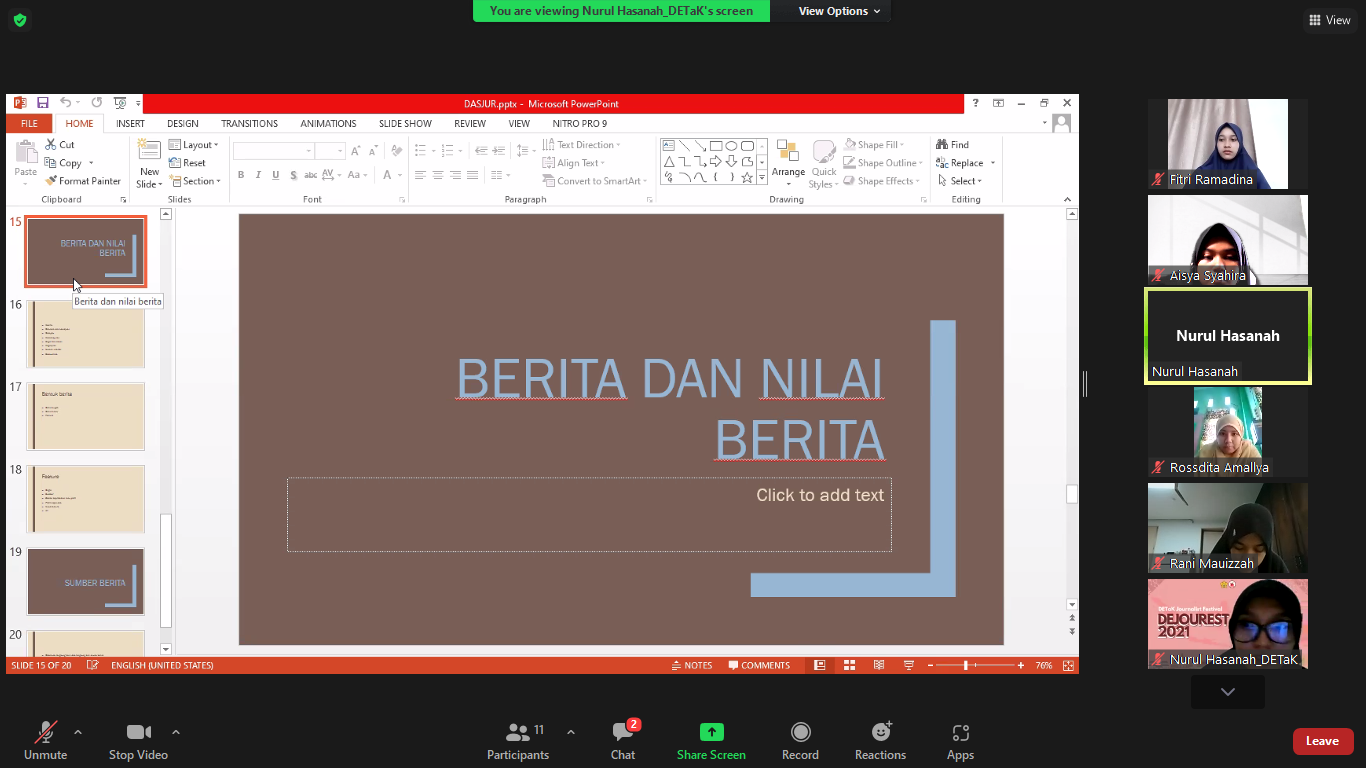 Beranda Terkini Kelas Intensif DETaK, Nurul Hasanah Ajarkan Tips dan Teknik Wawancara