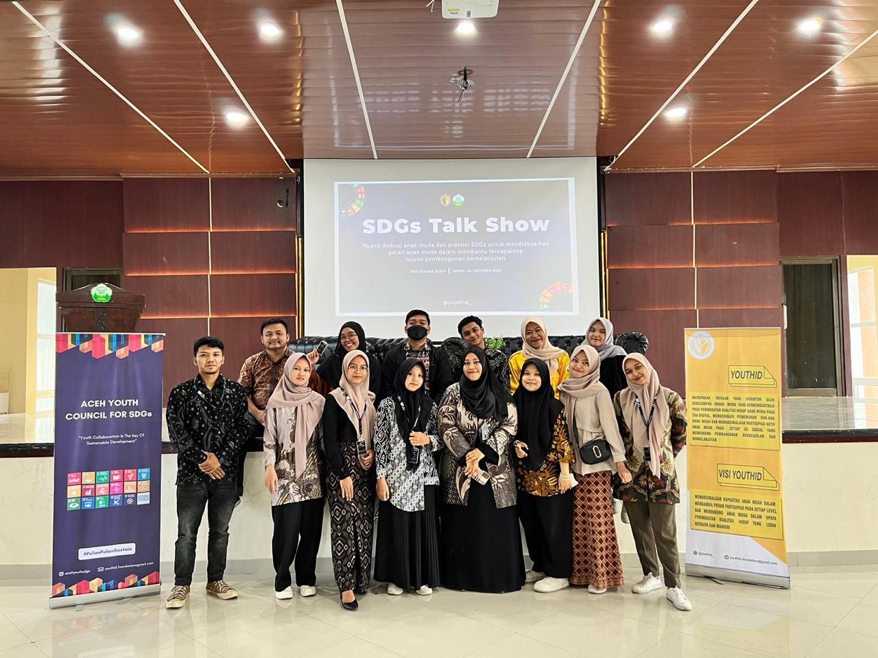 Banda Aceh – Yayasan Suara Aksi Anak Muda (YouthID) sukses menggelar Talk Show yang bertemakan “Youth’s Passion to Achieve SDGs” pada Senin, 24 Oktober 2022 di Aula Politeknik Kesehatan (Poltekkes) Aceh. Talk Show dihadiri oleh perwakilan dari 38 komunitas anak muda yang ada di Aceh dengan tujuan mengajak anak muda dan praktisi SDGs untuk mendiskusikan peran yang bisa diambil anak muda dalam membantu tercapainya tujuan pembangunan berkelanjutan.