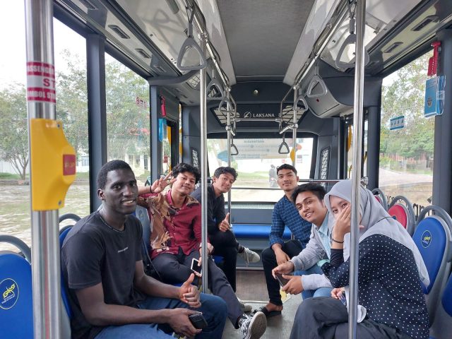 Volunteer Pusat Riset Ilmu Sosial dan Budaya (PRISB) menikmati dan mencoba kemudahan yang ditawarkan oleh bus Trans Campus pada Selasa, 31 Januari 2023 di lingkungan Universitas Syiah Kuala (USK) dan Universitas Islam Negeri (UIN) Ar-Raniry.