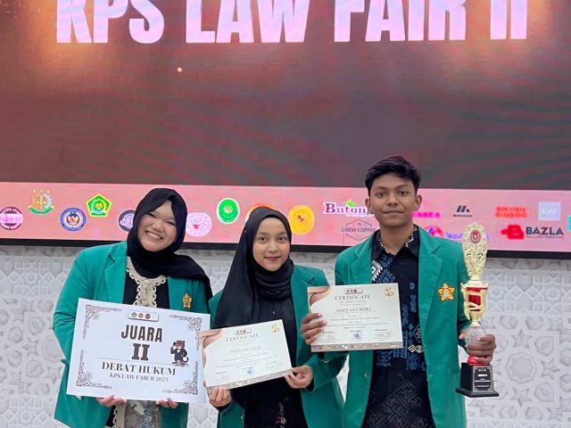 Darussalam – Tim Komunitas Debat Fakultas Hukum (KDFH) Universitas Syiah Kuala (USK) meraih juara 2 dalam kompetisi Debat Hukum Nasional KPS Law Fair II UIN AR-RANIRY 2025 yang diselenggarakan oleh Komunitas Peradilan Semu Fakultas Syariah dan Hukum UIN AR-RANIRY dengan mengusungkan tema “Kilaukan Hukum, Meraih Juara di Tanah Rencong” pada Kamis, 9 Oktober 2025.
